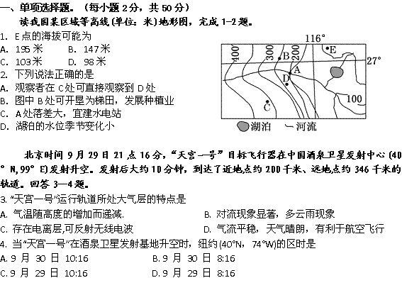 百度:【KS5U首发】湖南省衡阳市八中2012届高三第四次月考试卷(地理)