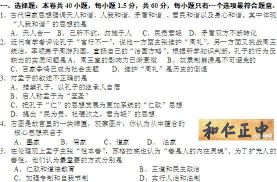 有道:【KS5U首发】广东省中山中学11-12学年高二上学期期中试题历史