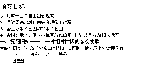 有道:浙江省宁波市神州学校高一生物《自由组合定律》学案