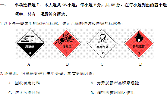 有道:KS5U首发】广东省中山一中11-12学年高二上学期学业水平测试化学文缺答案