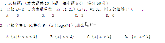 百度:【KS5U首发】广东省深圳高级中学2012届高三第三次月考试卷数学文