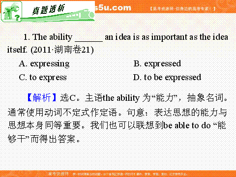 有道:2012届高考英语二轮复习(湖南版)课件:第8讲 非谓语动词与with复合结构