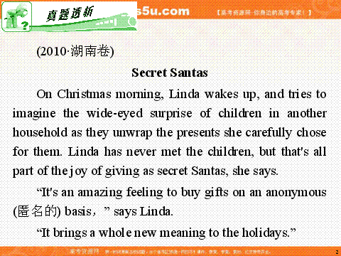 谷歌:2012届高考英语二轮复习(湖南版)课件:第27讲 阅读简答(2)