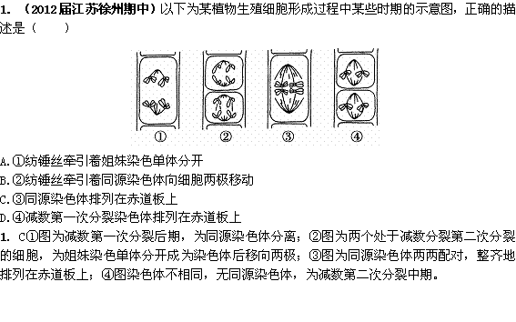 谷歌:2011年高一生物同步练习:2.1《减数分裂》(第1课时)(苏教版必修2)