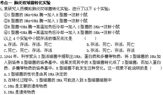 谷歌:湖南省宁乡县实验中学高三生物一轮复习《第20讲 DNA是主要的遗传物质》练习题(缺答案)