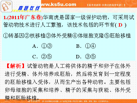 谷歌:2012届高考生物二轮总复习专题导练(江苏专版)课件:专题15 胚胎工程