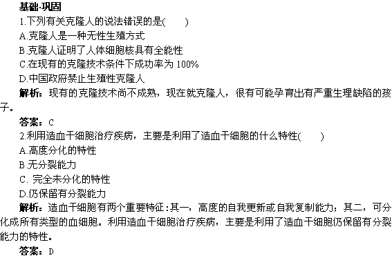 谷歌:湖南省宁乡县实验中学生物选修三《42关注生物技术的伦理问题》基础达标测试