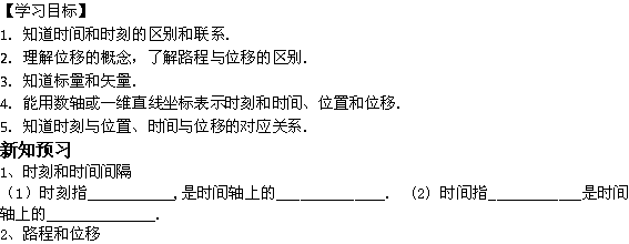谷歌:河北省沧州市颐和中学高一物理《时间和位移(第一课时)》学案