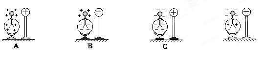 2. 使带电的金属球靠近不带电的验电器,验电器的箔片张开。下列各图表示验电