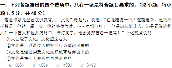 百度:【KS5U首发】福建省厦门一中11-12学年高二上学期期中试题政治文