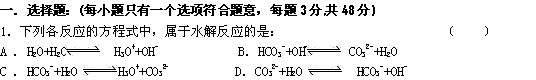 有道:江西省九江一中11-12学年高二上学期第二次月考(化学)