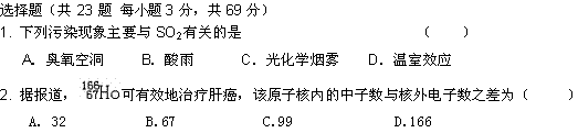 百度:江苏省南京实验国际学校2010-2011学年高一下学期期中考试(化学)
