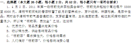 有道:【KS5U首发】浙江省杭州高中2012届高三第二次月考试题政治