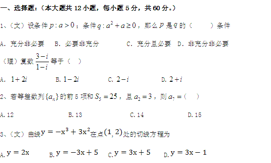 有道:【KS5U首发】甘肃省嘉峪关市一中2012届高三第三次模拟考试题数学