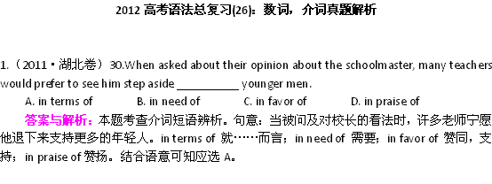 百度:2012高考语法总复习(26):数词,介词真题解析