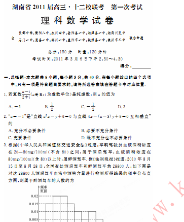 百度:湖南省十二校2011届高三第一次联考数学(理)试题(扫描版)