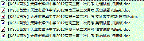 百度:【KS5U首发】天津市耀华中学2012届高三第二次月考 文科6份 扫描版