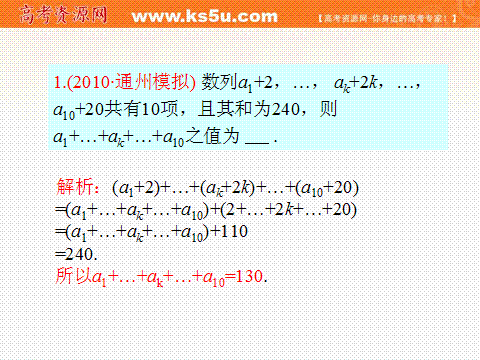 有道:2012届江苏省高考数学理二轮总复习专题导练课件:专题9 等差、等比数列的概念和性质