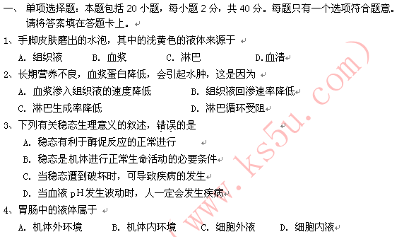 百度:江苏房山高级中学11-12学年高二上学期期中考试生物试题(选修)