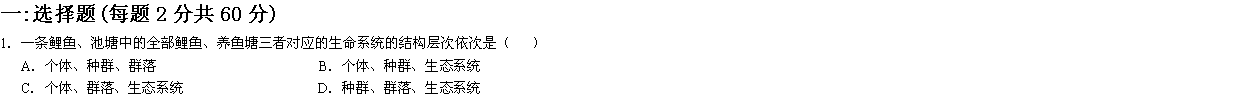 百度:江西省高安中学11-12学年高二上学期期中考试(生物)