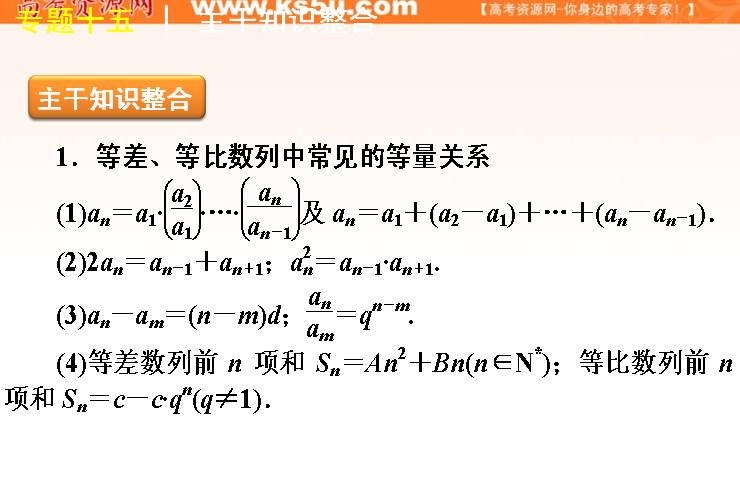 有道:2012届高考数学二轮复习精品课件(江苏专用)专题15 数列中的等量关系