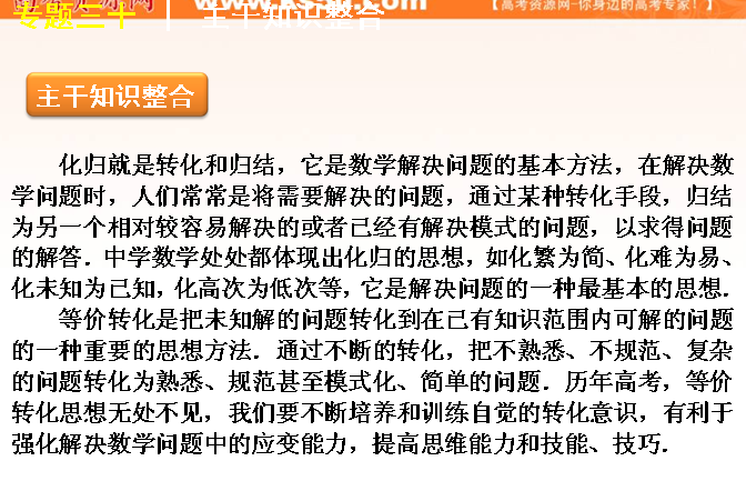 谷歌:2012届高考数学二轮复习精品课件(江苏专用)专题30 转化与化归思想