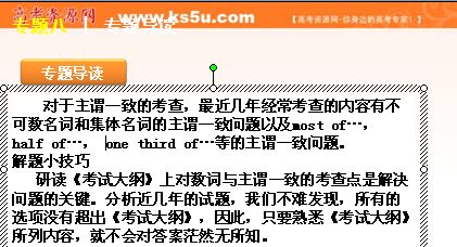 百度:2012届高考英语二轮复习精品课件(湖南专用)第1模块 语法填空 专题8 数词与主谓一致