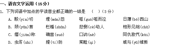 百度:江苏省淮安市吴承恩中学11-12学年高二第一次调研试题(语文)
