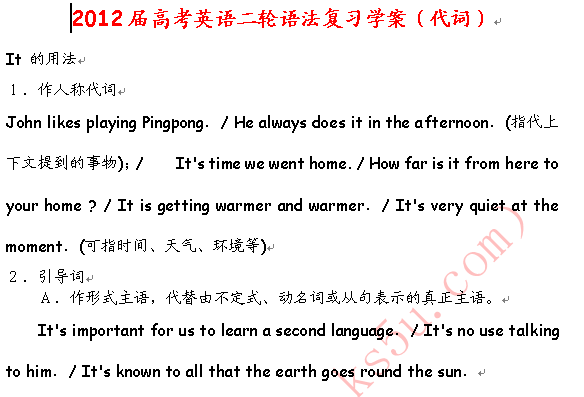 谷歌:2012届高考英语二轮语法复习学案(代词)