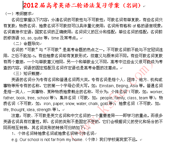 谷歌:2012届高考英语二轮语法复习学案(名词)