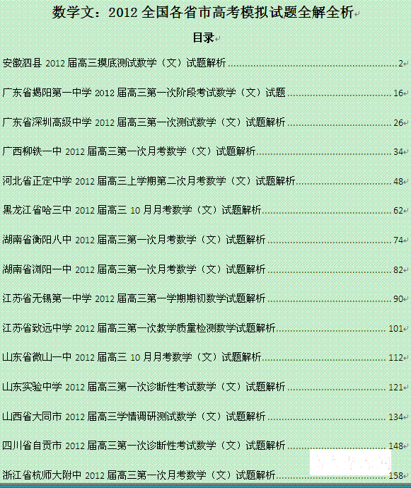 百度:数学文:2012全国各省市高考模拟试题全解全析