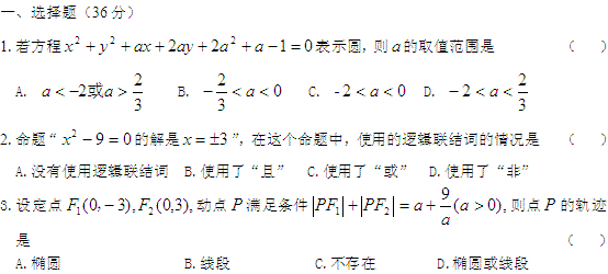 百度:【KS5U首发】浙江省诸暨中学11-12学年高二上学期期中试题数学理