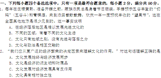 百度:【KS5U首发】浙江省诸暨中学11-12学年高二上学期期中试题政治文