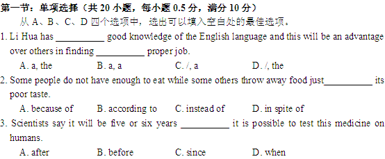 百度:【KS5U首发】浙江省诸暨中学11-12学年高一上学期期中试题英语