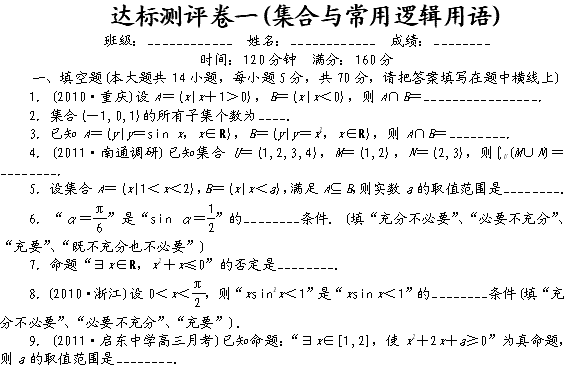 2012学案与评测理数苏教版:第1单元 达标测评卷一