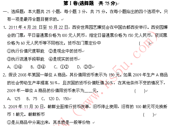 有道:河北师大附中高新校区11-12学年高一上学期第二次月考 政治