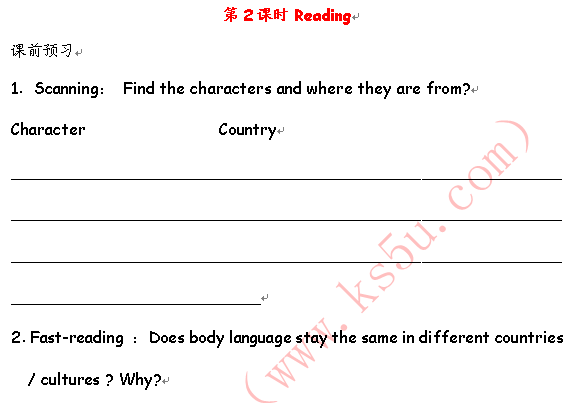 百度:高一英语同步测控:Unit 4 Body Language Reading(新人教必修4)