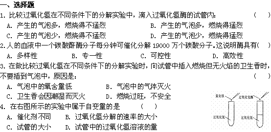 谷歌:云南省开远四中高一生物《比较过氧化氢在不同条件下的分解》练习题