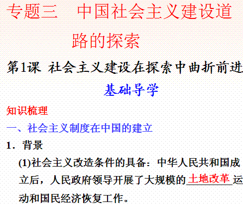 百度:历史人民版必修2精美课件:专题3 1社会主义建设在探索中曲折前进