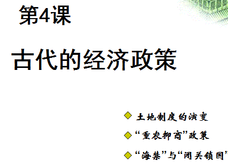有道:【湖南师大附中内部资料】高一历史必修2课件:第4课古代的经济政策(新人教版)