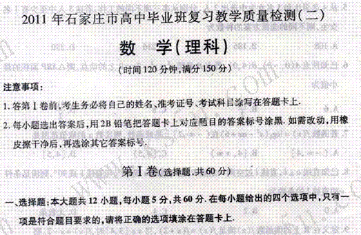 谷歌:河北省石家庄市2011届高三毕业班复习教学质量检测(二)(数学理)(扫描版)