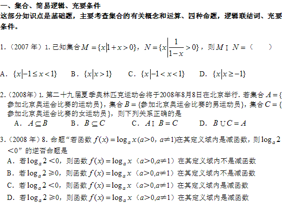 有道:广东省新高考4年(2007-2010)文科数学知识分类解析