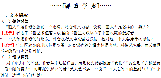有道:[原创]苏教语文《现代散文选读》教学案:第3课《画人记》课堂学案