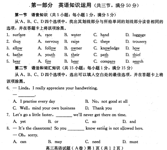 百度:河北省保定市2011届高三第一次模拟统考(英语)扫描版(保定一模)