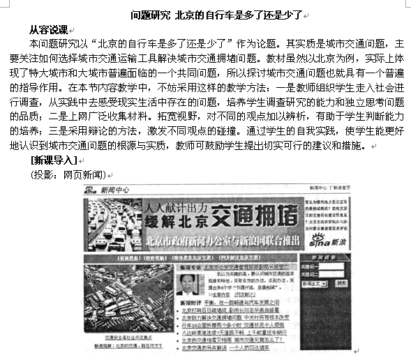 谷歌:10-11学年高一地理:5.3 问题研究 《北京的自行车是多了还是少了》教案(新人教版必修2)
