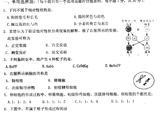 百度:广东省揭阳一中10-11学年高一下学期期中考试(生物)扫描版
