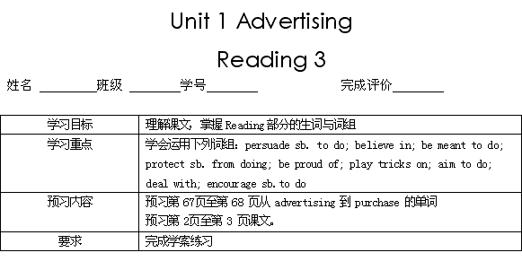 有道:江苏省南京六中高一英语资料:Unit 1 Advertising Reading 3