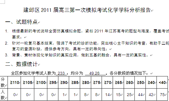 百度:江苏省南京市2011届高三一模化学学科分析报告建邺区