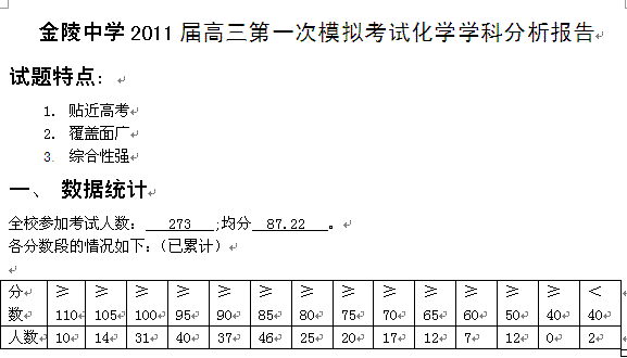 百度:江苏省南京市2011届高三一模化学学科分析报告金陵中学