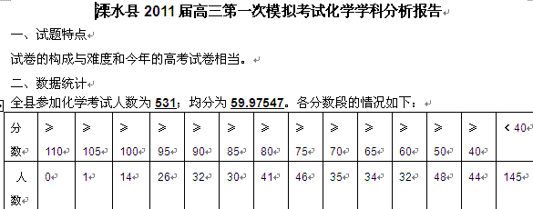 百度:江苏省南京市2011届高三一模化学学科分析报告溧水县